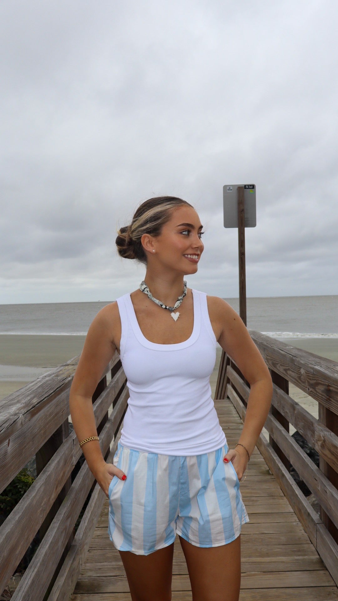 Your favorite stripes just got cozier. These lightweight cotton shorts feature a relaxed Our Lulu Mac Shorts a boxer-style fit with a soft elastic waistband and pockets for easy wear. Perfect for class, lounging, or a beach stroll, the Boxer Blue Shorts bring that effortless, lived-in look you’ll reach for every day.
